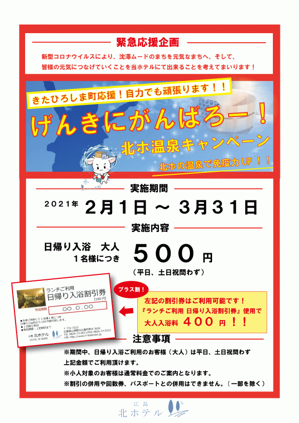 現在、北ホテルが休館している事で、多くのお客様にご理解承り大変感謝申し上げます。